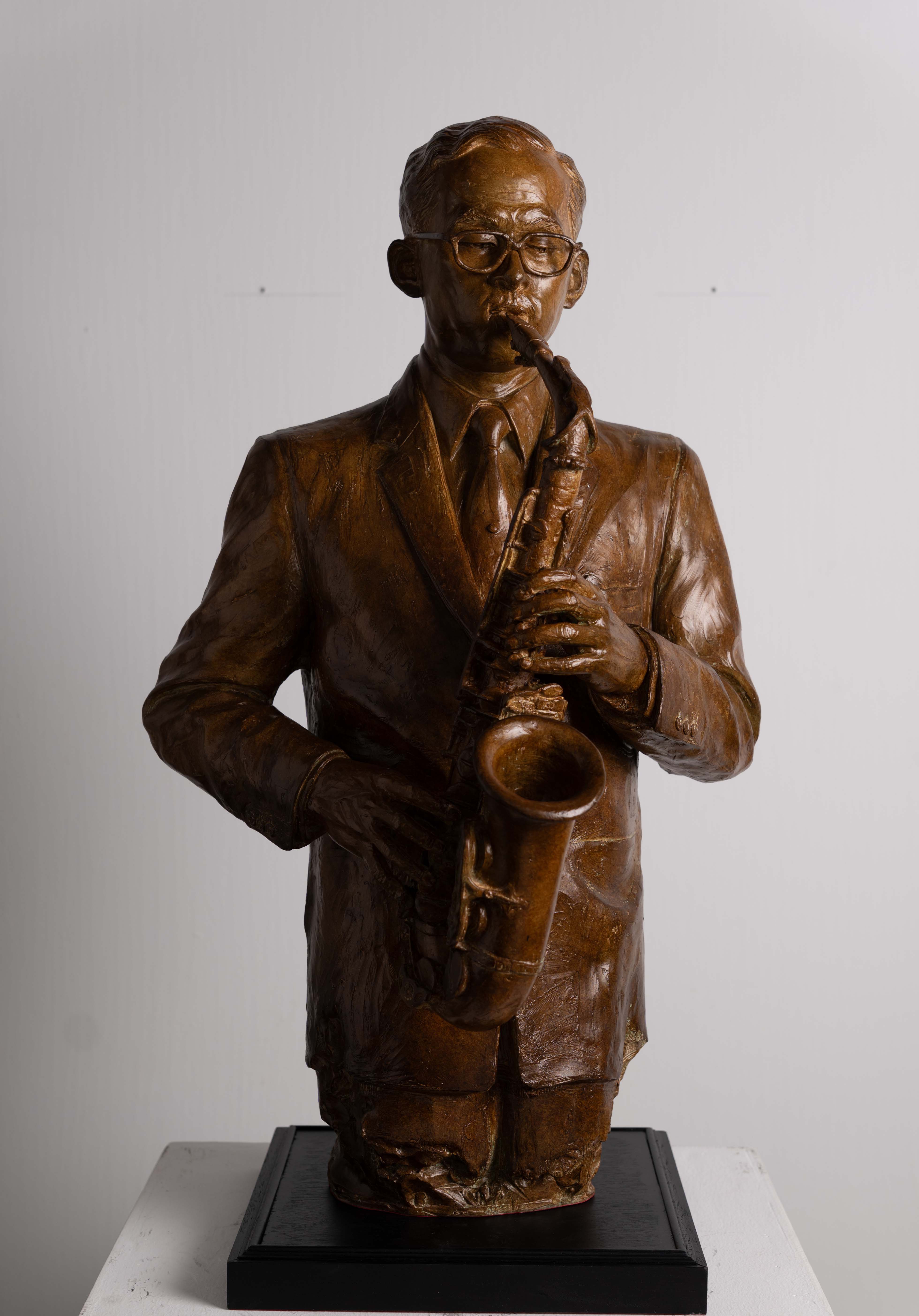 ในหลวงรัชกาลที่ 9 ทรงเป่าแซกโซโฟนรายละเอียดหมวดหมู่ ประติมากรรม (Sculpture)ศิลปิน วัชระ ประยูรคำ (Watchara Prayoonkum)