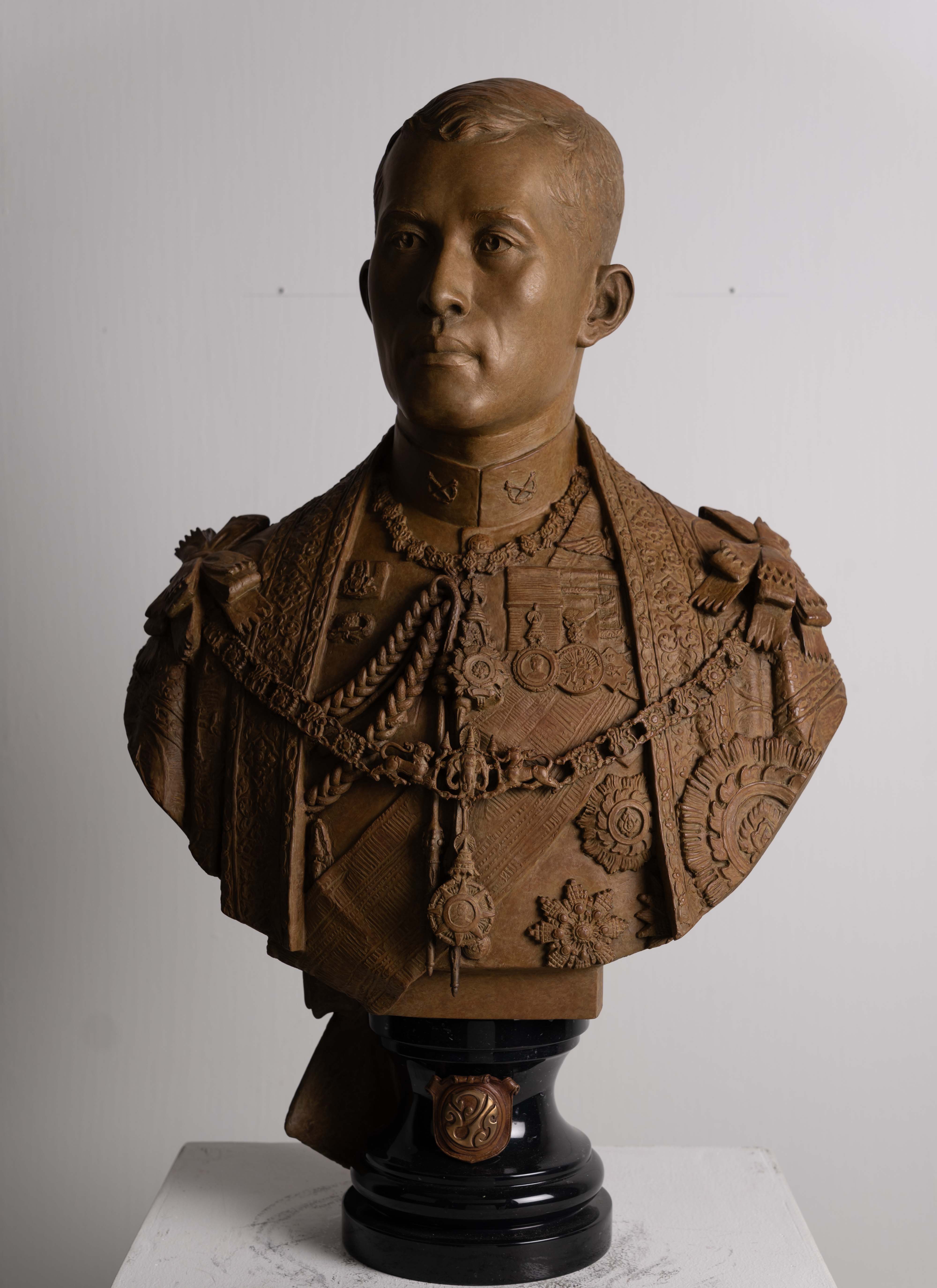 พระบาทสมเด็จพระปรเมนทรรามาธิบดีศรีสินทรมหาวชิราลงกรณ พระวชิรเกล้าเจ้าอยู่หัวรายละเอียดหมวดหมู่ ประติมากรรม (Sculpture)ศิลปิน ปัทม์ บุณยรังค (Pat Boonyarungka)
